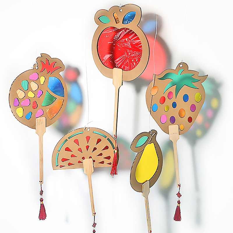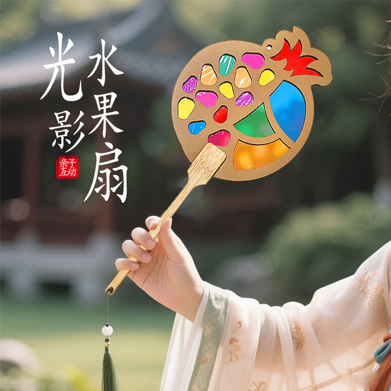 新款水果造型光影团扇子挂饰手工diy草霉西瓜苹果梨石榴材料包