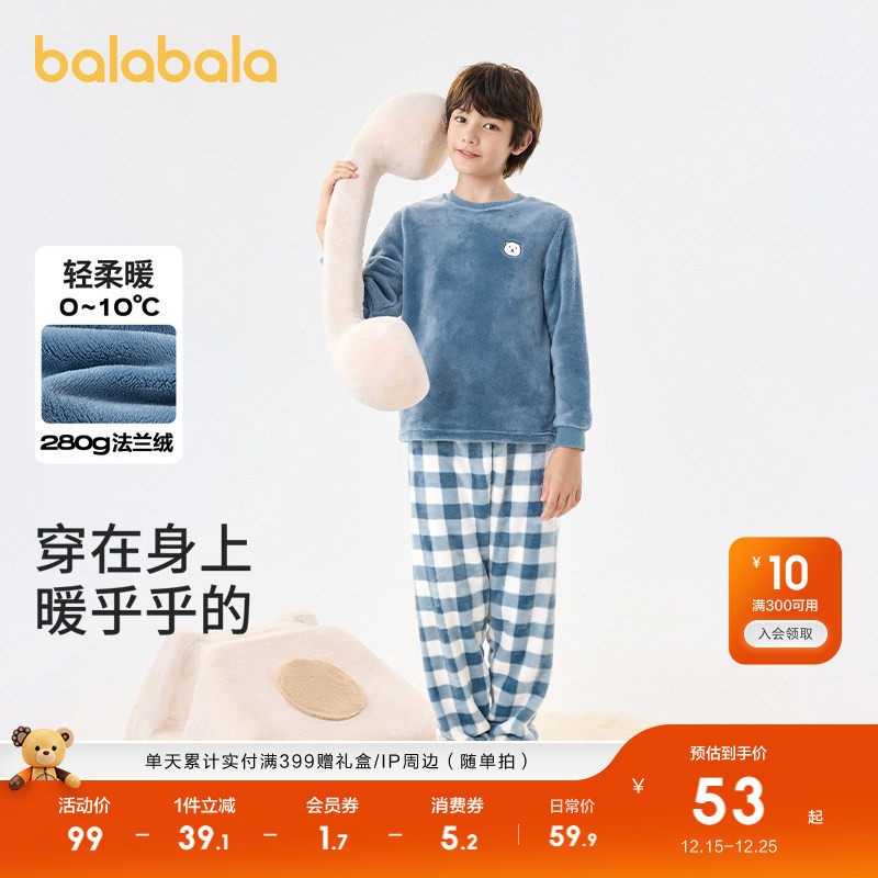 巴拉巴拉儿童家居服套装冬季保暖法兰绒男女童睡衣小童大童亲子潮