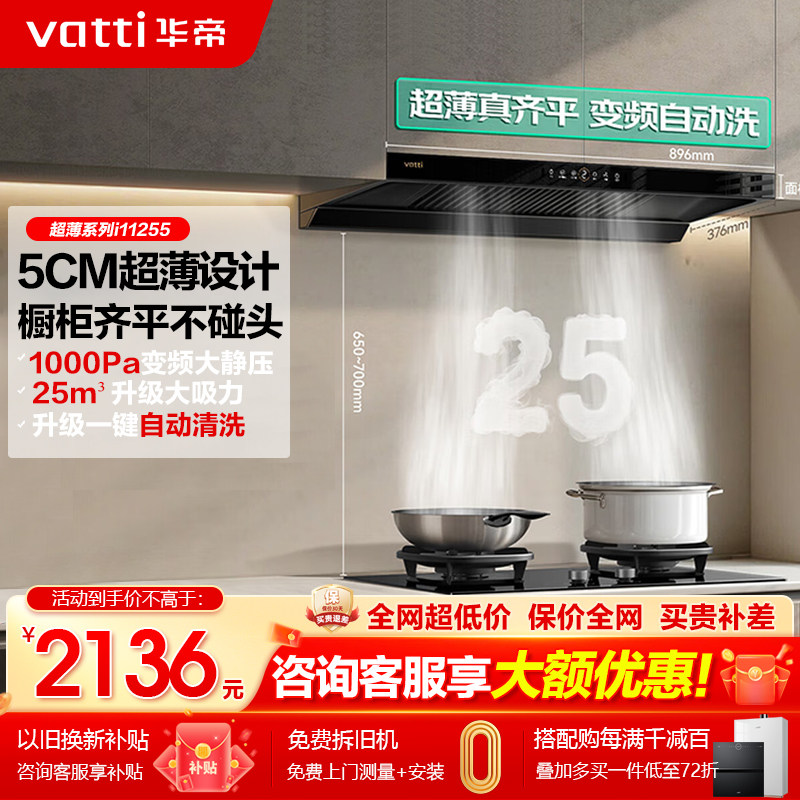 华帝i11255抽油烟机燃气灶套餐变频自动清洗厨房大吸力烟灶套餐