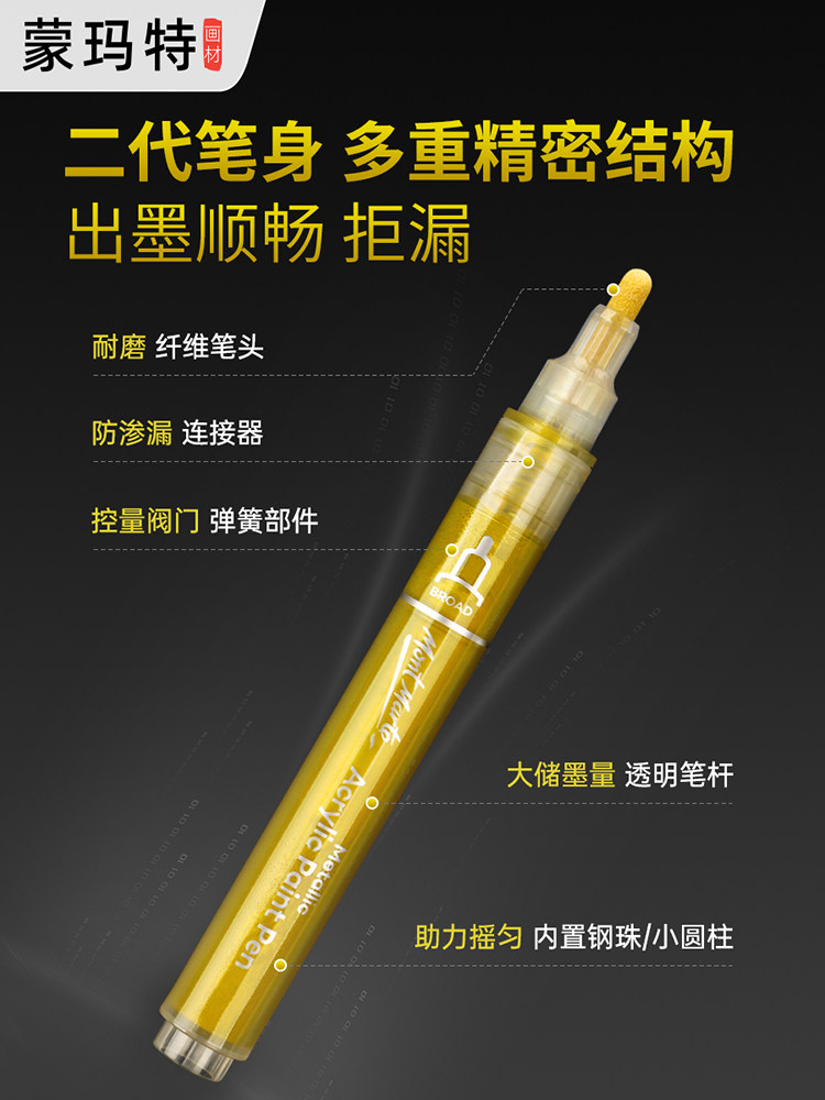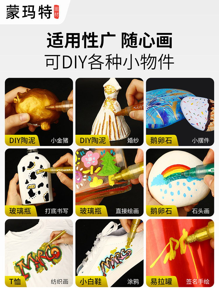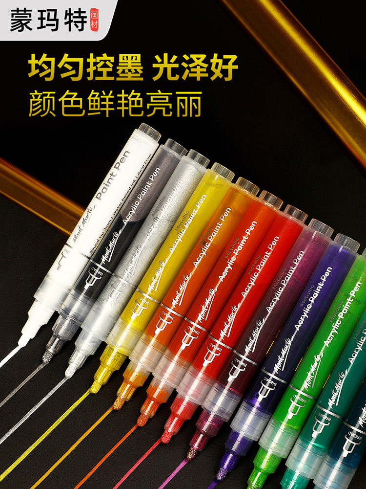 蒙玛特金属丙烯马克笔防水不掉色不透色油漆高达模型补色笔金色签字笔银色电镀金漆工业咕卡白色高光笔美术生