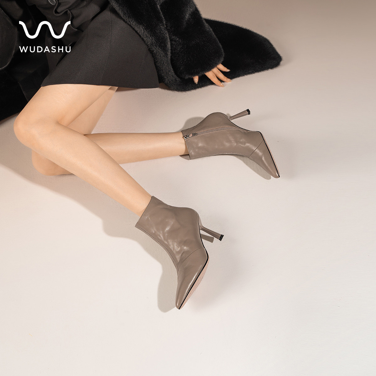 吴大叔2025秋冬季新款靴子女款美拉德尖头高跟女靴弹力短靴瘦瘦靴