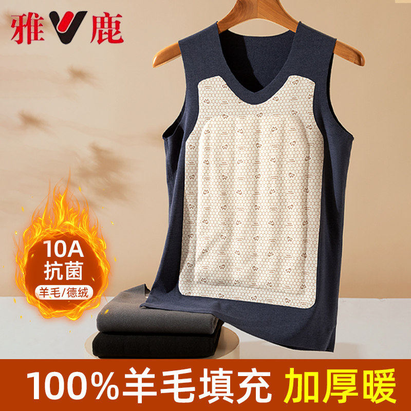 雅鹿男士保暖背心男款冬季加绒加厚内穿羊绒蚕丝打底德绒上衣羊毛