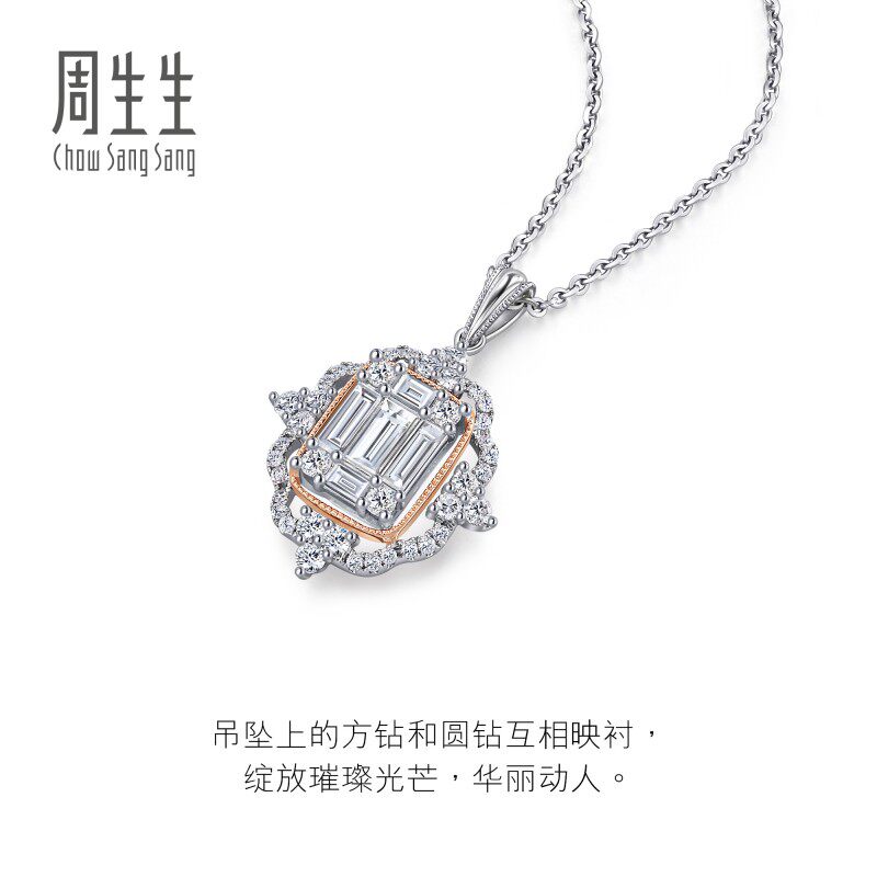 周生生钻之颂系列18K白红分色黄金钻石吊坠不含项链女93342P