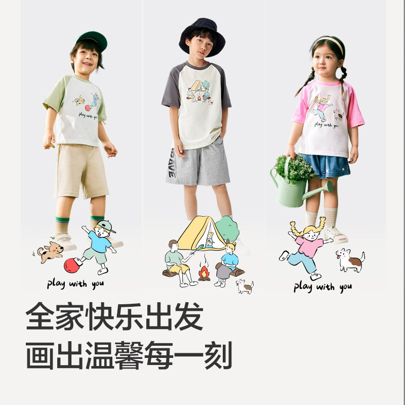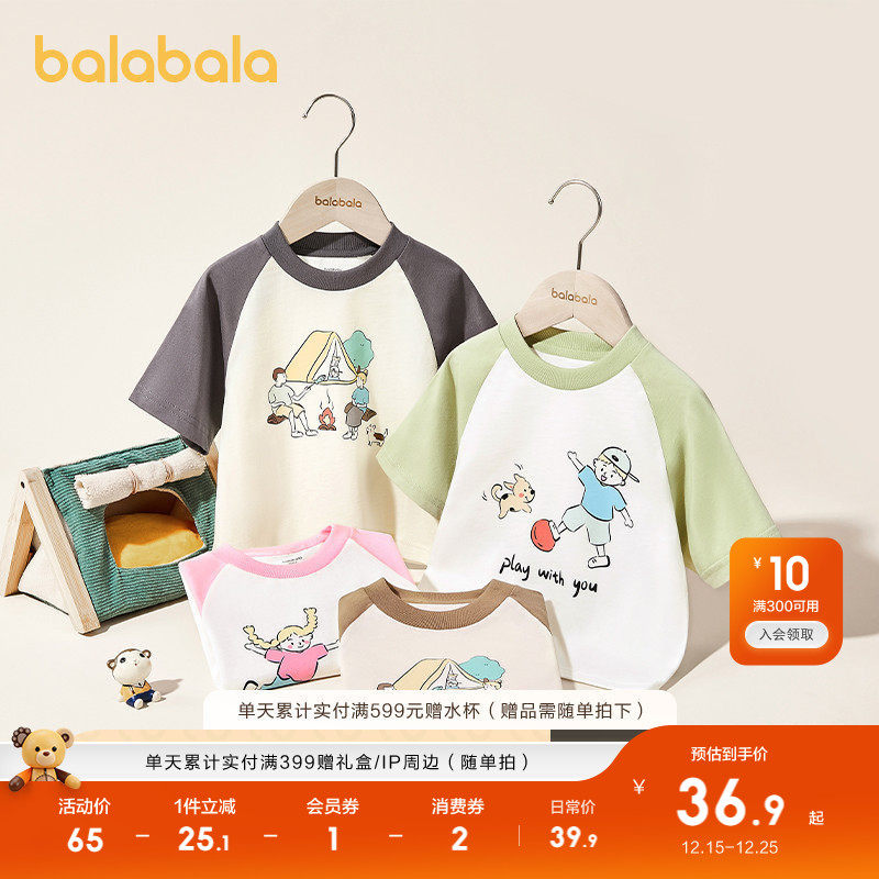 巴拉巴拉童装儿童t恤男童短袖上衣2025春夏装女童纯棉亲子装潮