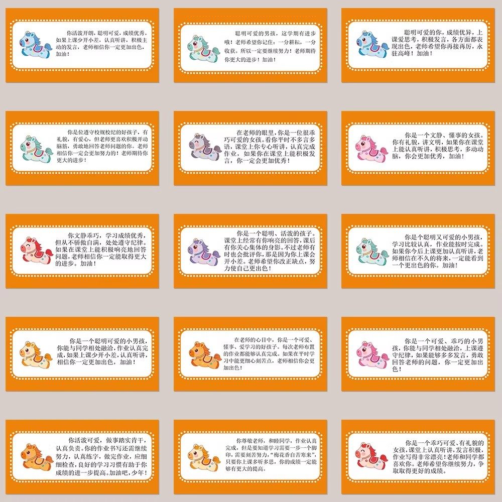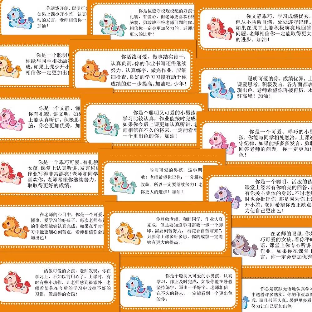 144张小马教师期末评语贴纸暖心正能量寄语激励学生ins风桌面贴纸
