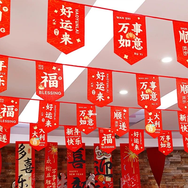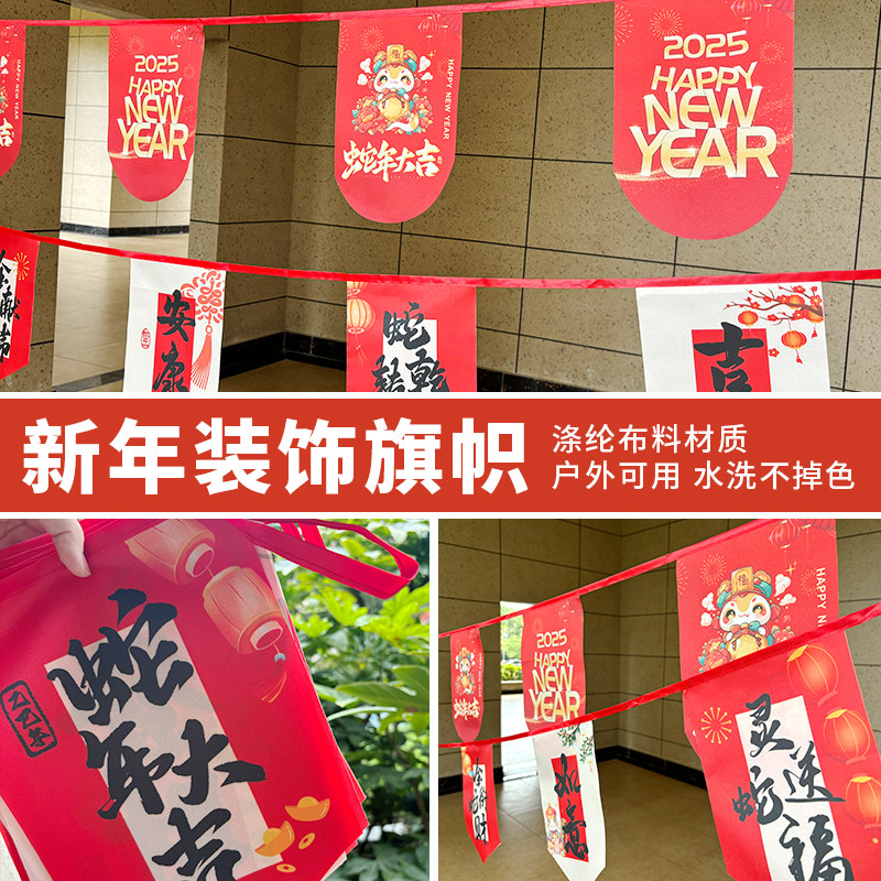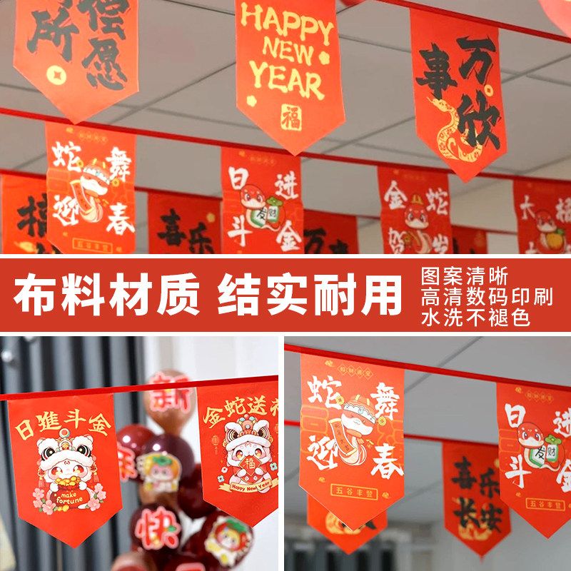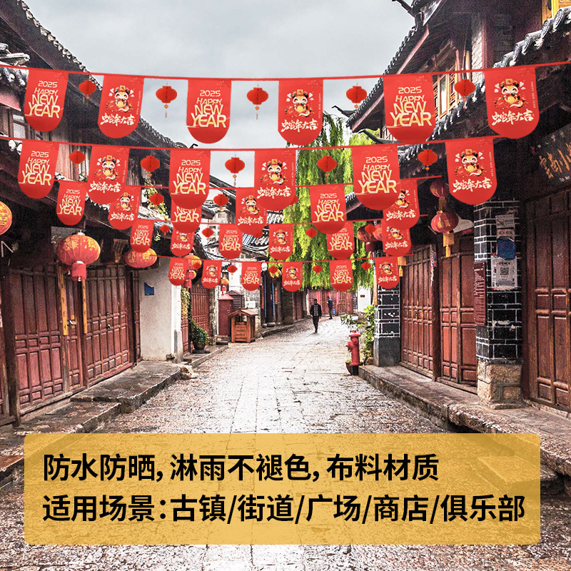 2026马年旗帜新年装饰串旗吊旗户外过年店铺商场超市彩旗开门红三角旗小彩旗元旦春节氛围布置饭店集市小旗
