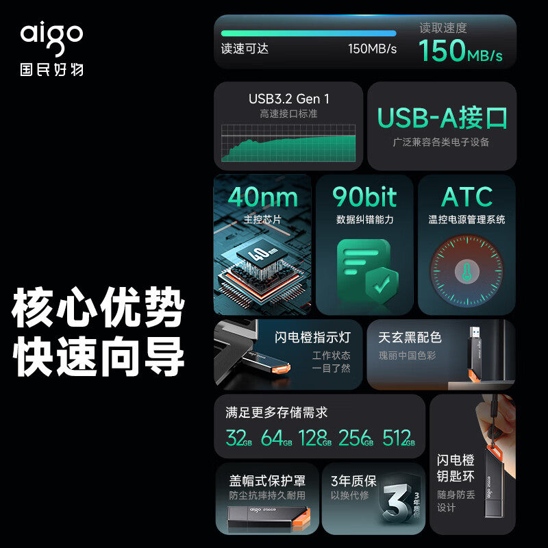 爱国者官方旗舰店U盘正品256G高速USB3.0车载优盘大容量电脑办公