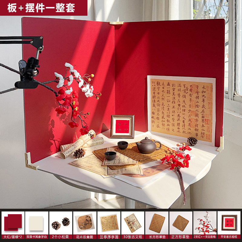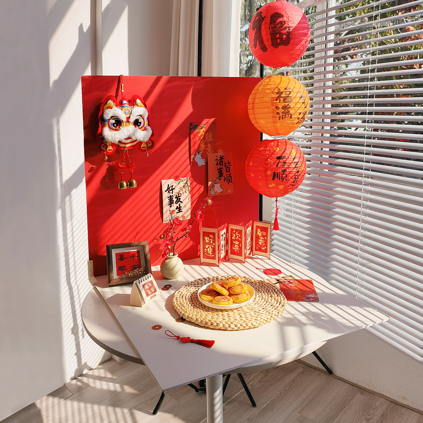 新年拍摄道具背景板红色小摆件过年跨年美食产品圣诞摄影摆拍谷美国潮中国风装饰品博主美妆珠宝拍照背景布