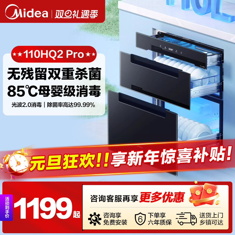 美的暖阳消毒柜110HQ2Pro家用嵌入式紫外线高温烘干一体消毒碗柜