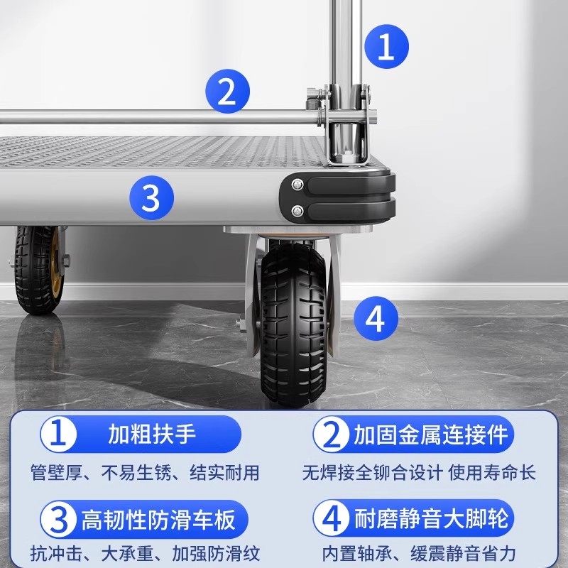 304不锈钢手推车平板搬运车拉货家用静音折叠小推车水产海鲜拖车