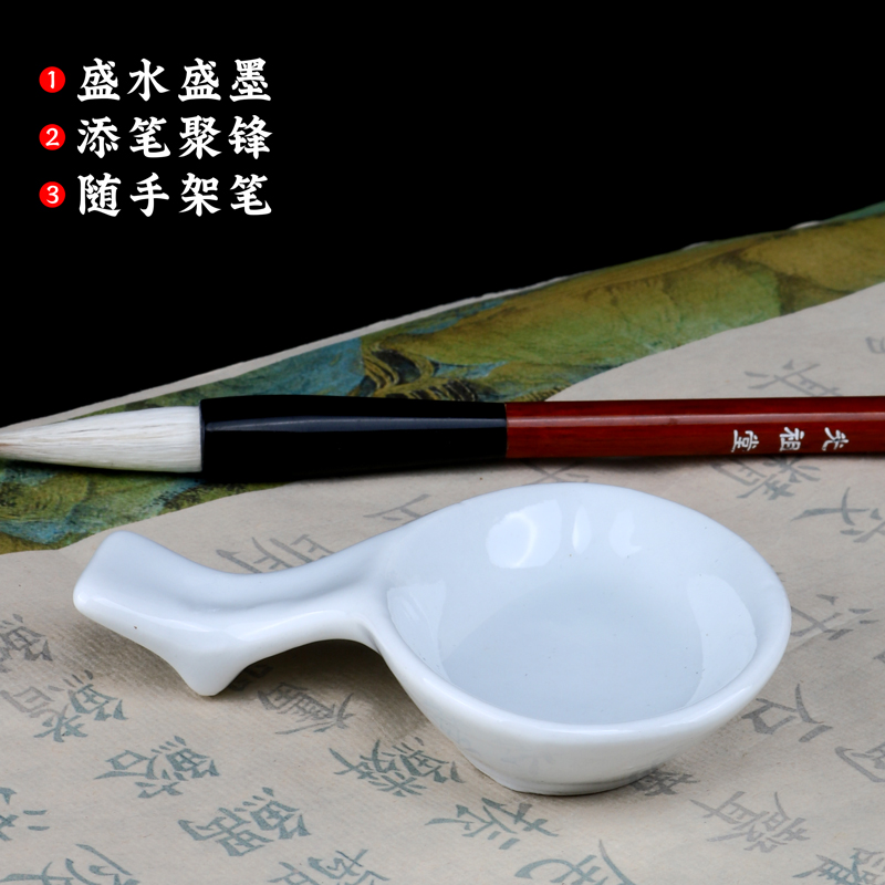 光祖陶瓷两用墨碟毛笔水碟书法多功能陶瓷碟笔搁墨池书法古风墨汁小学生书法毛笔架墨盘墨盒笔洗砚台文房四宝