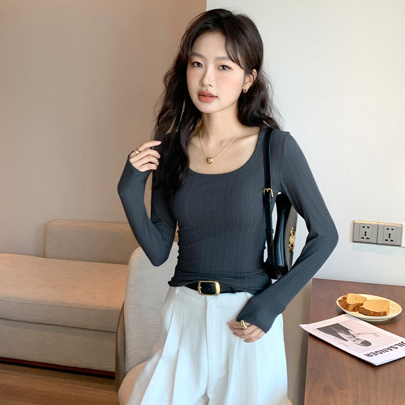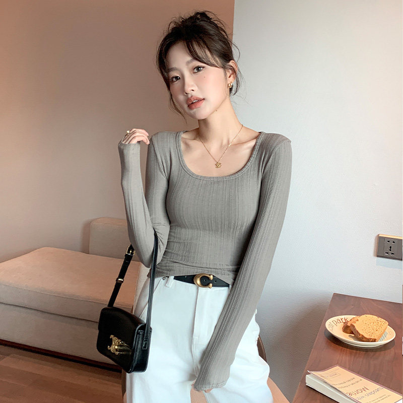 杏色U领打底衫女士2025新款冬季内搭外穿针织显瘦高级感打底上衣