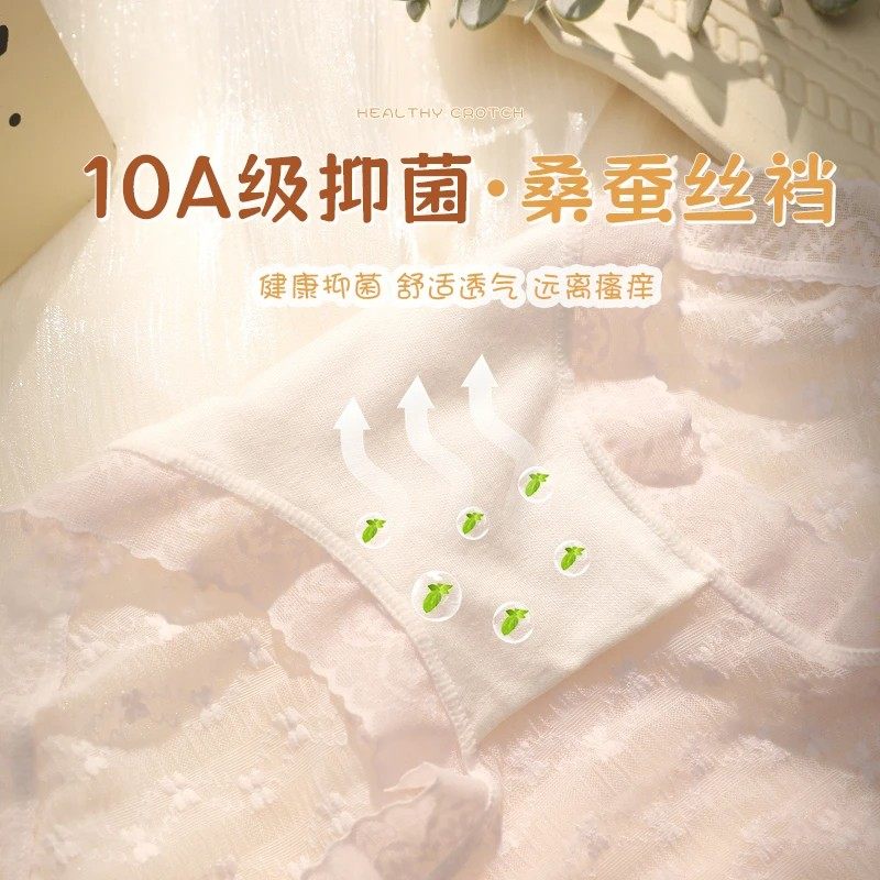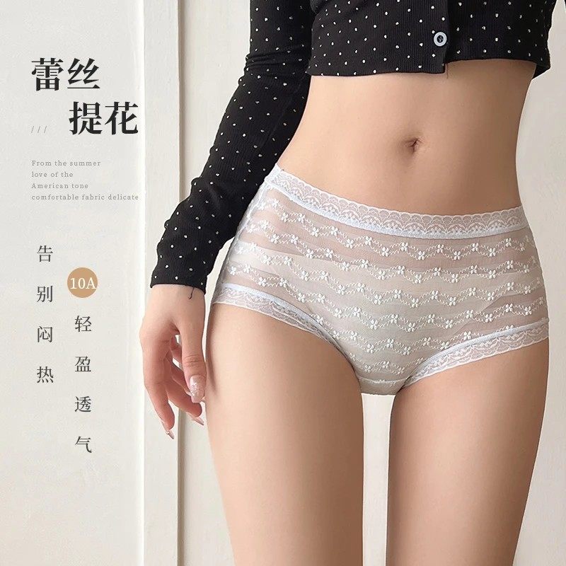 10A抗菌蚕丝加长裆蕾丝轻薄透气速干性感中腰内裤透明诱惑三角裤