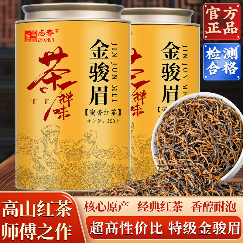 志春 正宗武夷金骏眉红茶蜜香黄芽浓香型新茶养胃茶叶罐装250g