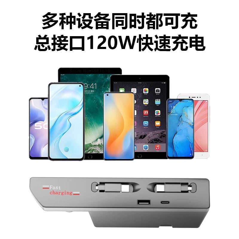 车载充电器超级快充720W带伸缩线适用苹果华为汽车点烟器转换插头