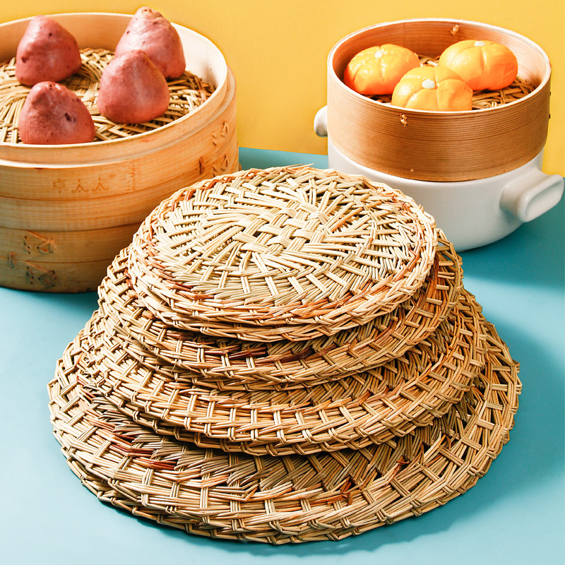 蒸小笼包的草垫子不粘圆形手编加密蒸笼垫草编蒸包子馒头馍蒸笼布