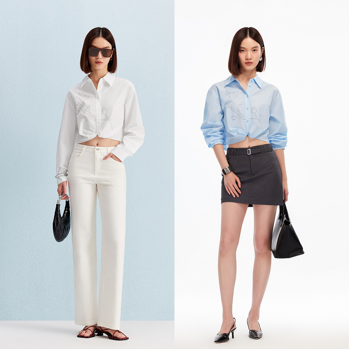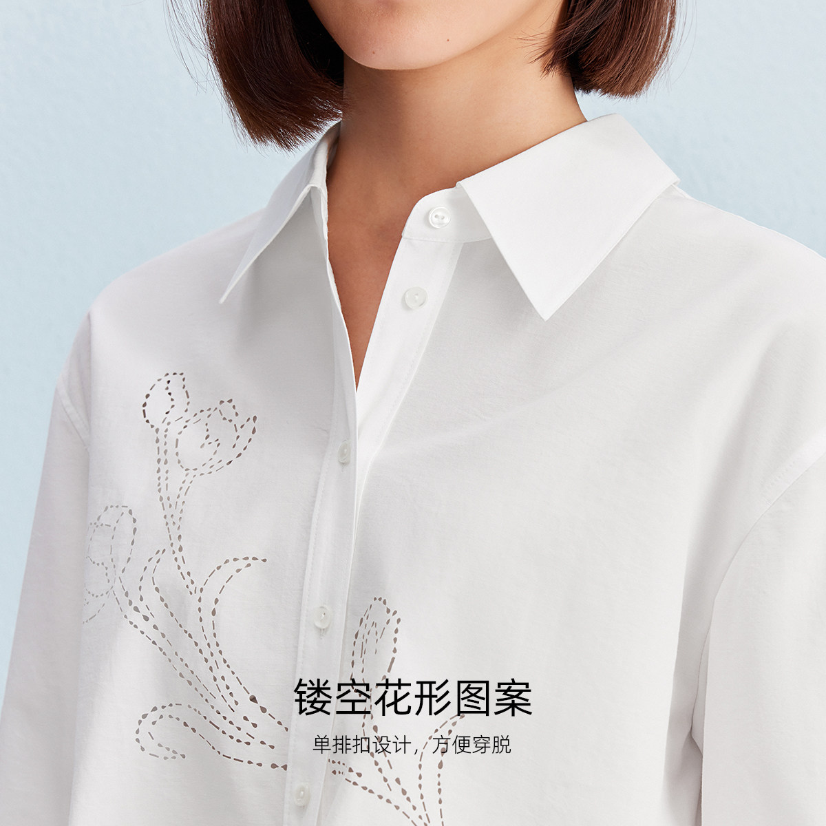 Vero Moda衬衫2025秋季新款含棉镂空花形下摆系带上衣325305008