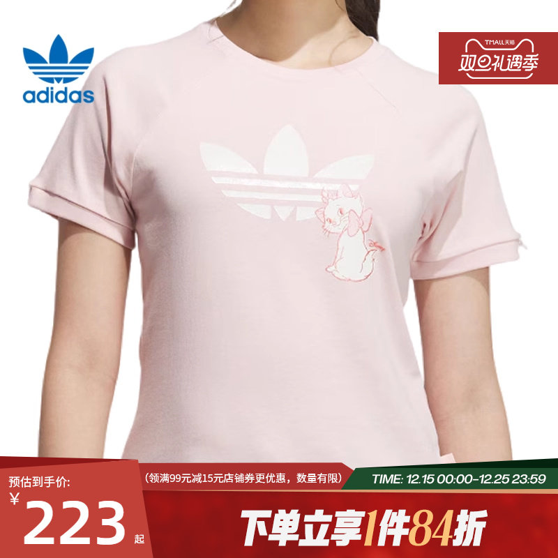 休闲宽松纯棉上衣圆领短袖T恤男女夏季新款adidas阿迪达斯轻运动