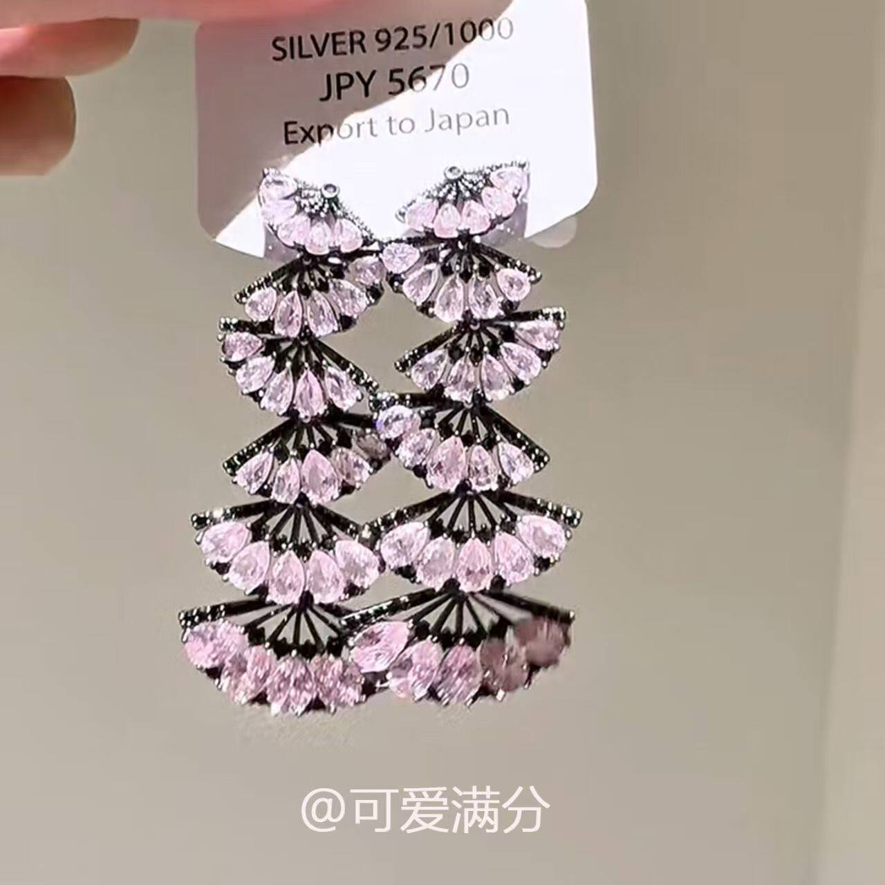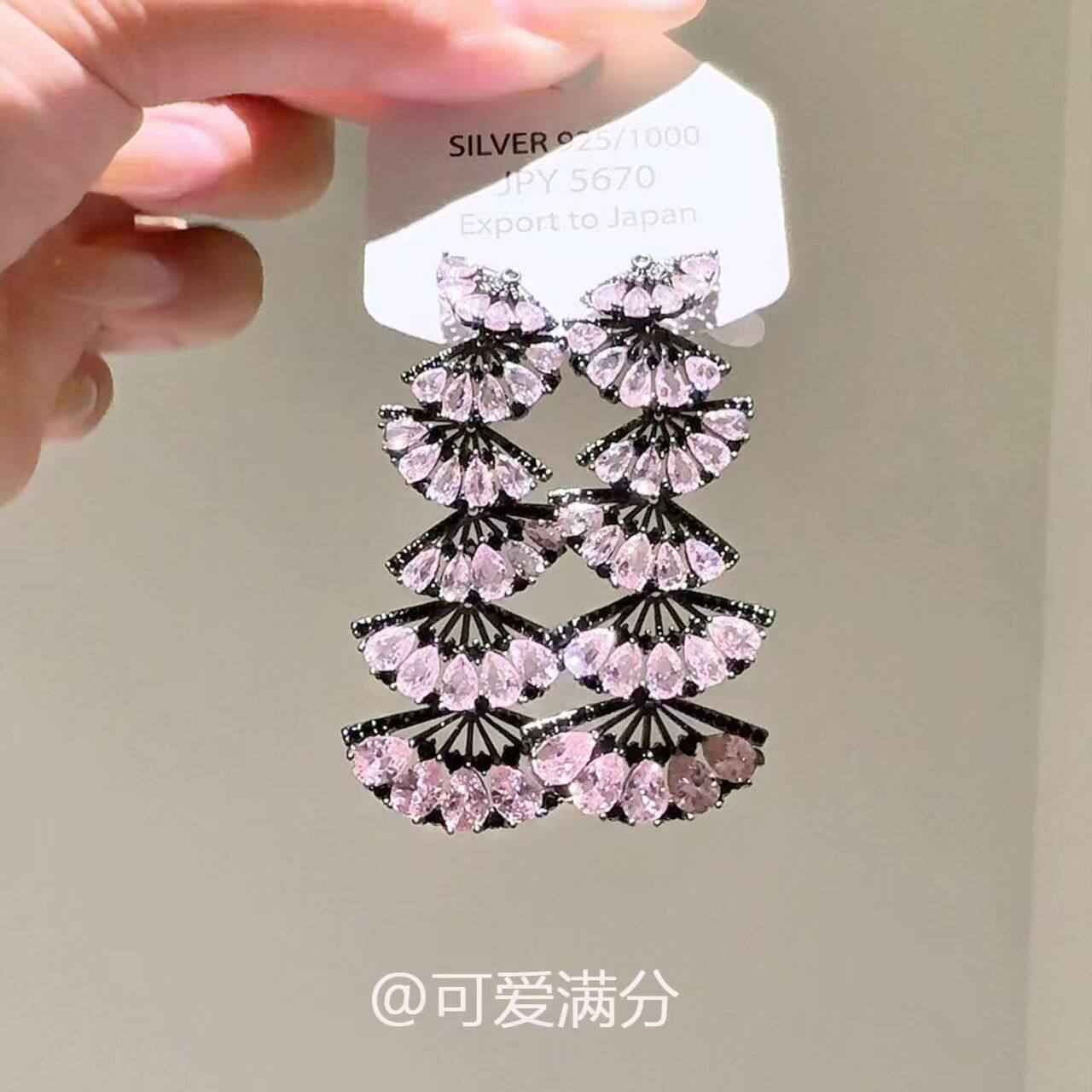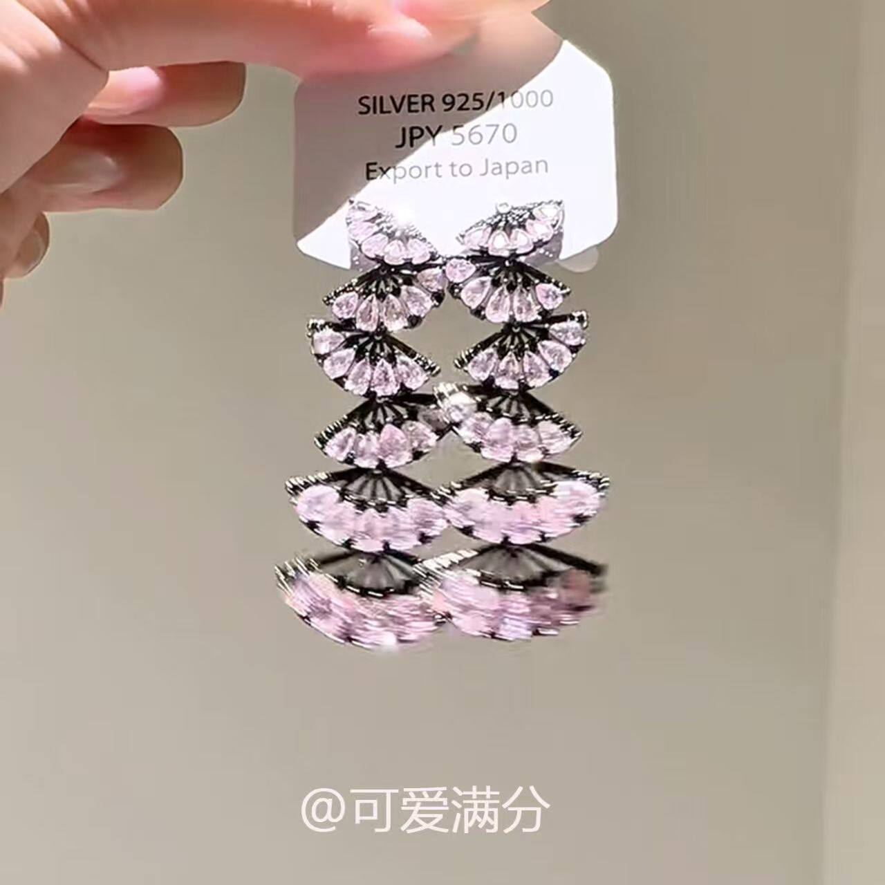 「甜酷主义」复古重工黑粉多层折扇耳钉爆闪精致小众轻奢气质耳饰