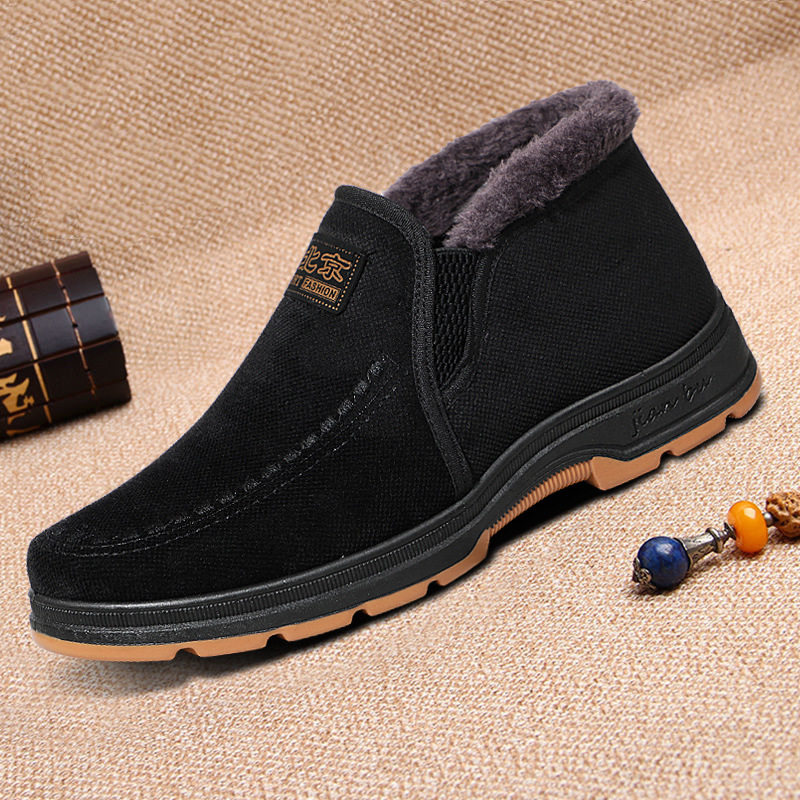 冬季老北京布鞋男棉鞋加厚保暖兔毛爸爸运动鞋平底防滑中老年棉靴