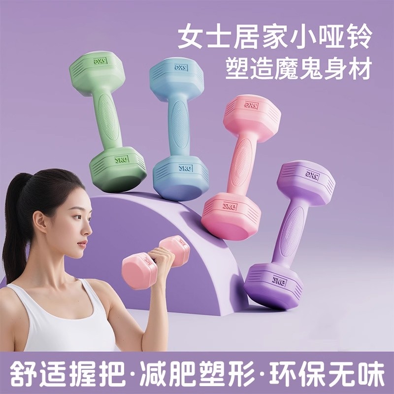 哑铃女士健身家用器材六角儿童练臂肌瑜伽包胶2KG一对男士小哑铃
