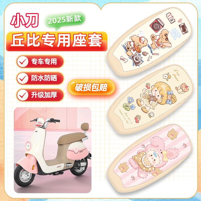 适用小刀丘比电动车座套TDT02343Z防水皮革坐垫套卡通座椅套装饰