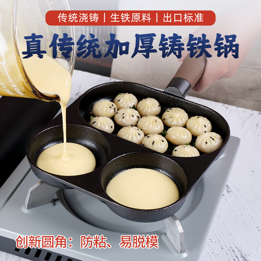 铸铁煎锅早餐锅煎蛋神器无涂层不粘锅蛋饺蛋堡燃气灶电磁炉牛排锅