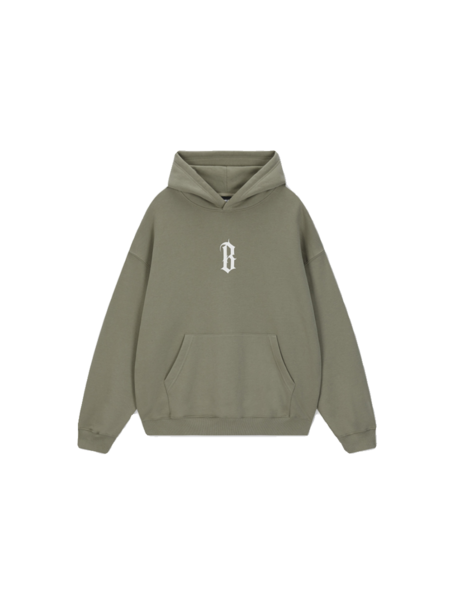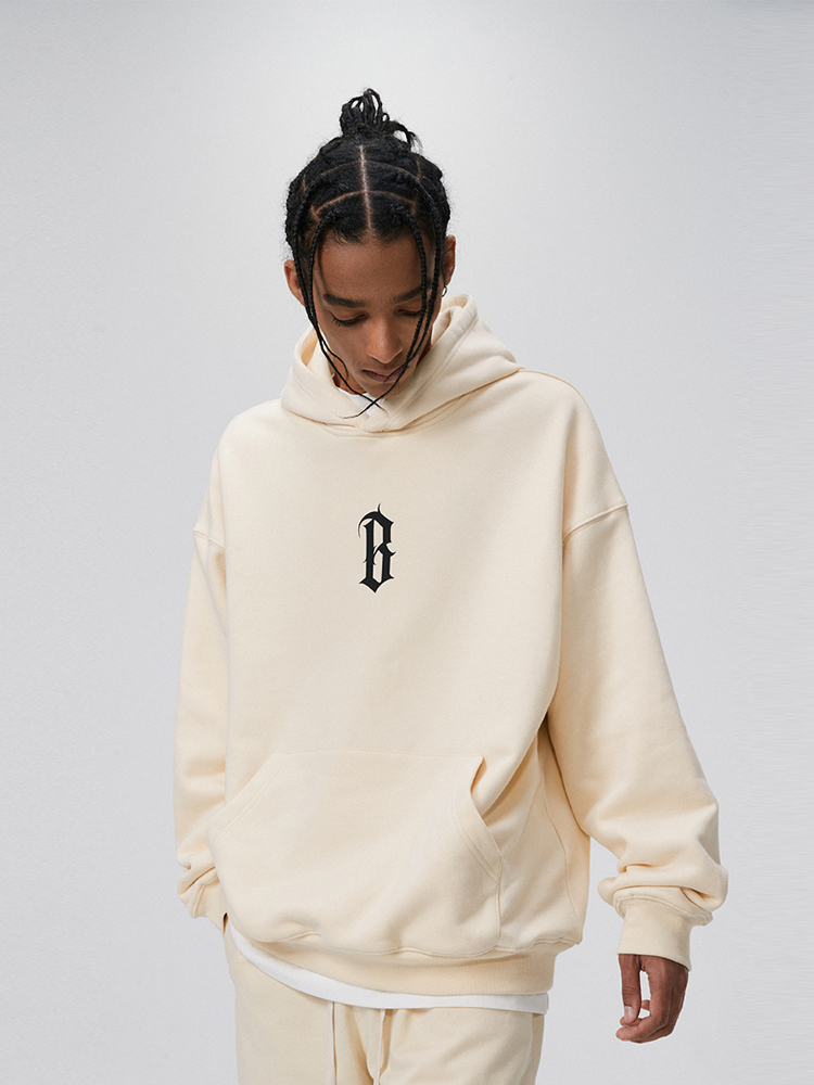 BONELESS基础B字胶浆印花加绒帽衫美式高街复古针织重磅连帽卫衣