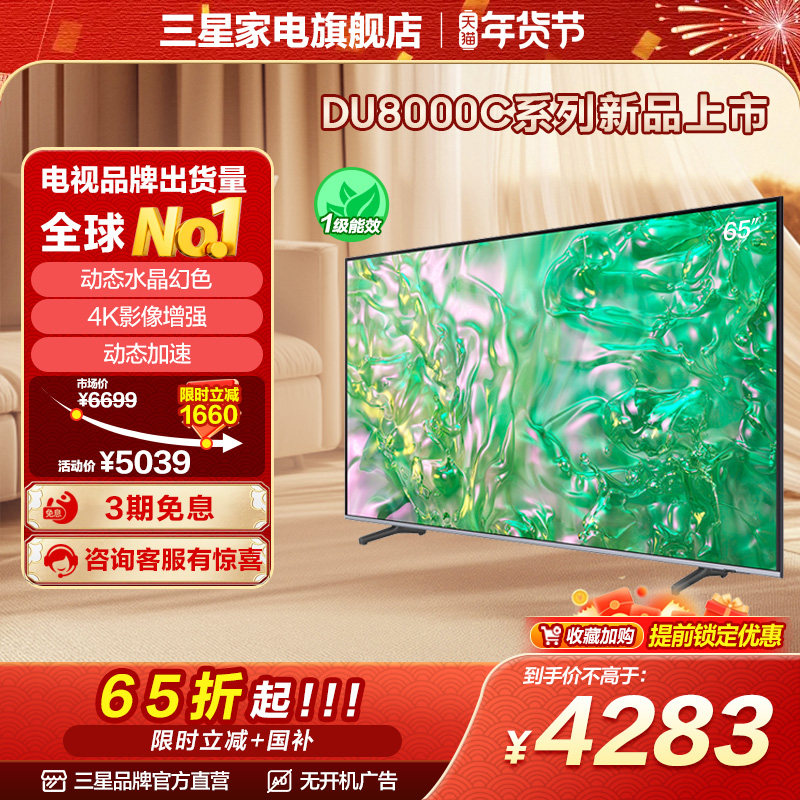 三星 65DU8000C 65英寸 钻彩4K LED电视机官方新品换新补贴液晶屏