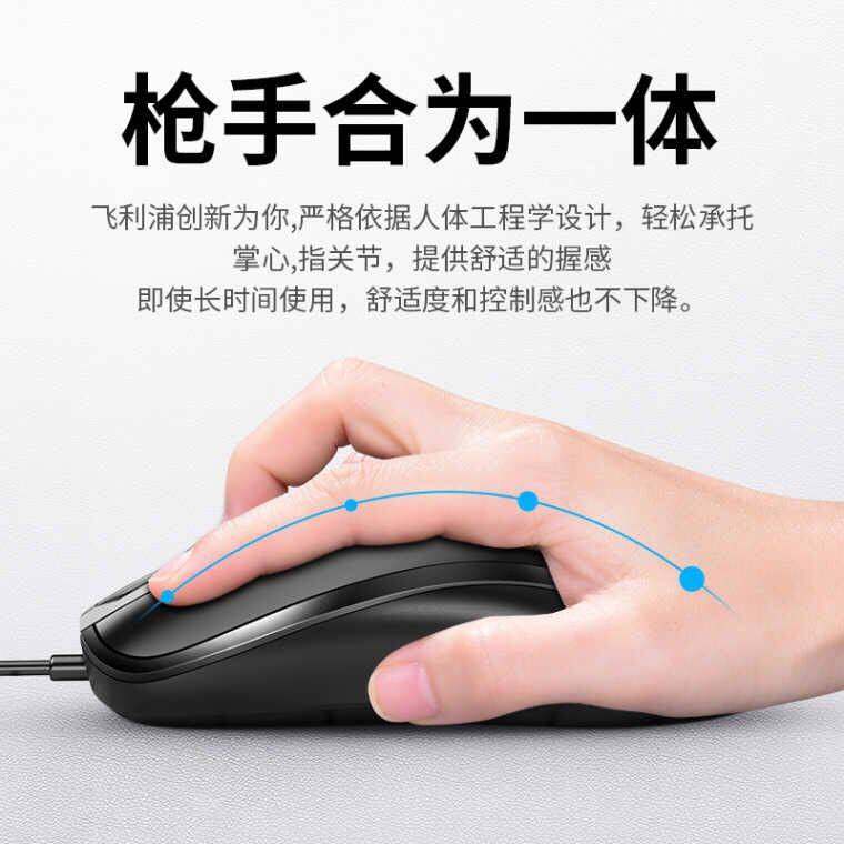 飞利浦鼠标有线USB家用办公商务笔记本静音无声台式电脑电竞游戏