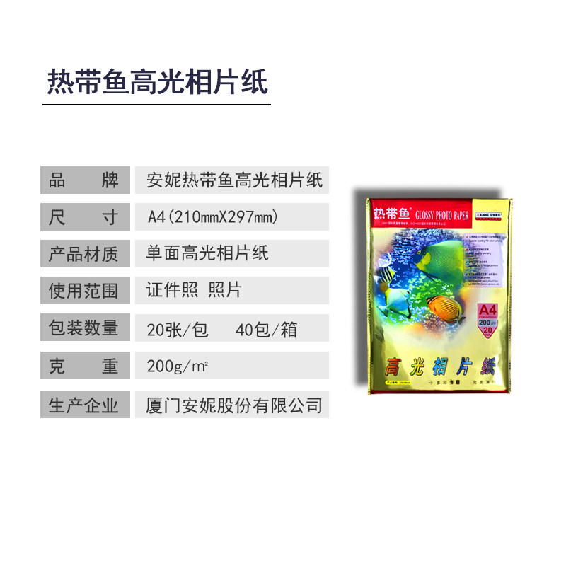 安妮热带鱼高光相片纸200g相片纸效果图专用纸A4高光相片纸