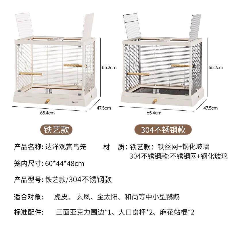 达洋鸟笼B6045鹦鹉笼不锈钢全景玻璃高透鹦鹉别墅玄凤和尚凯克用
