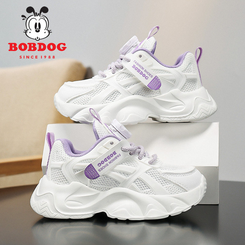 巴布豆童鞋女童小白鞋2025新款透气儿童白色运动鞋男童鞋子秋皮面