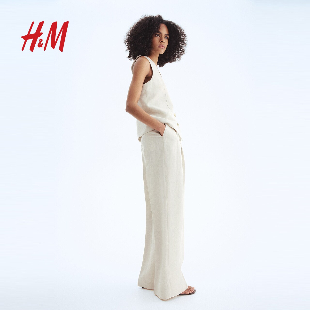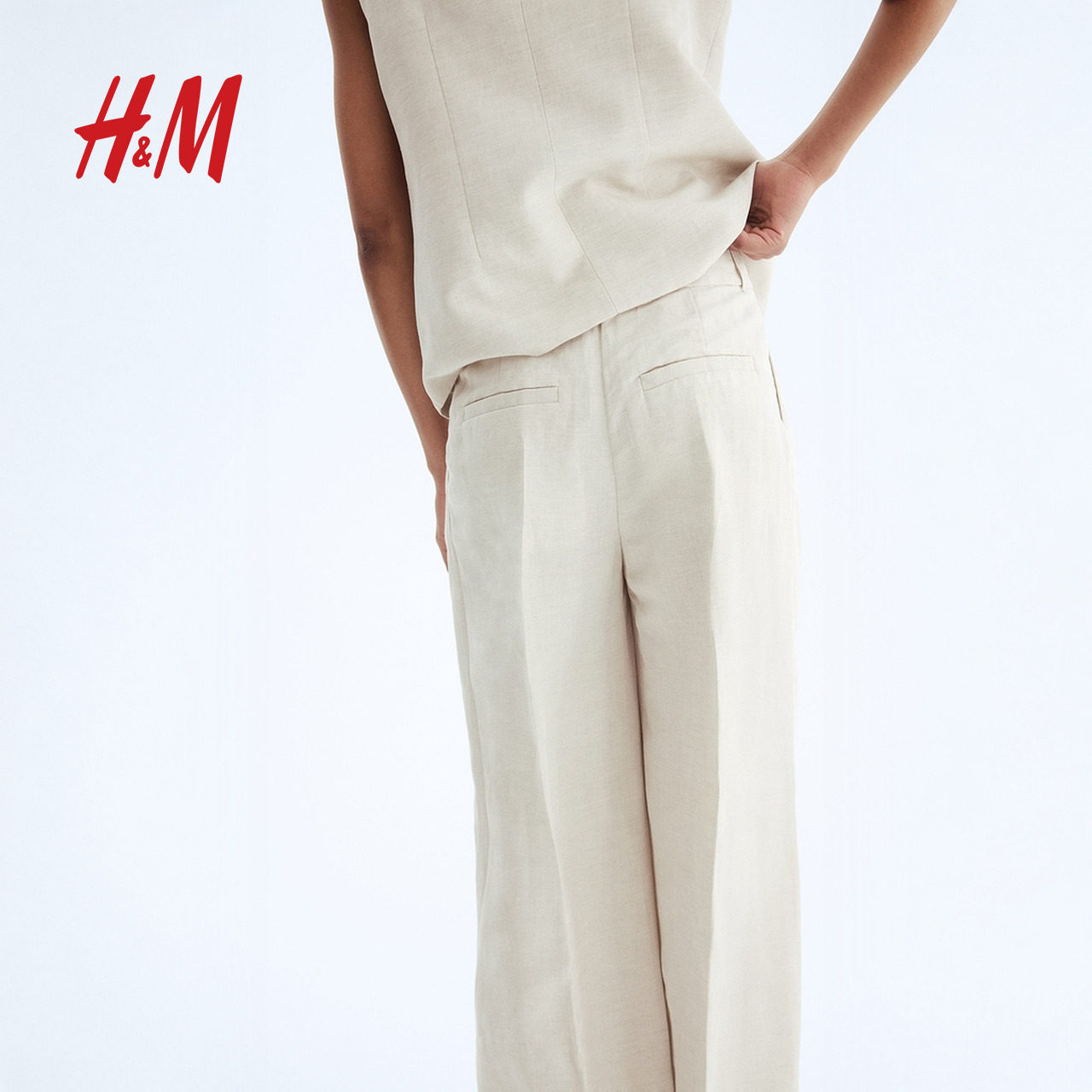 HM女装裤子春季亚麻混纺西裤1277040