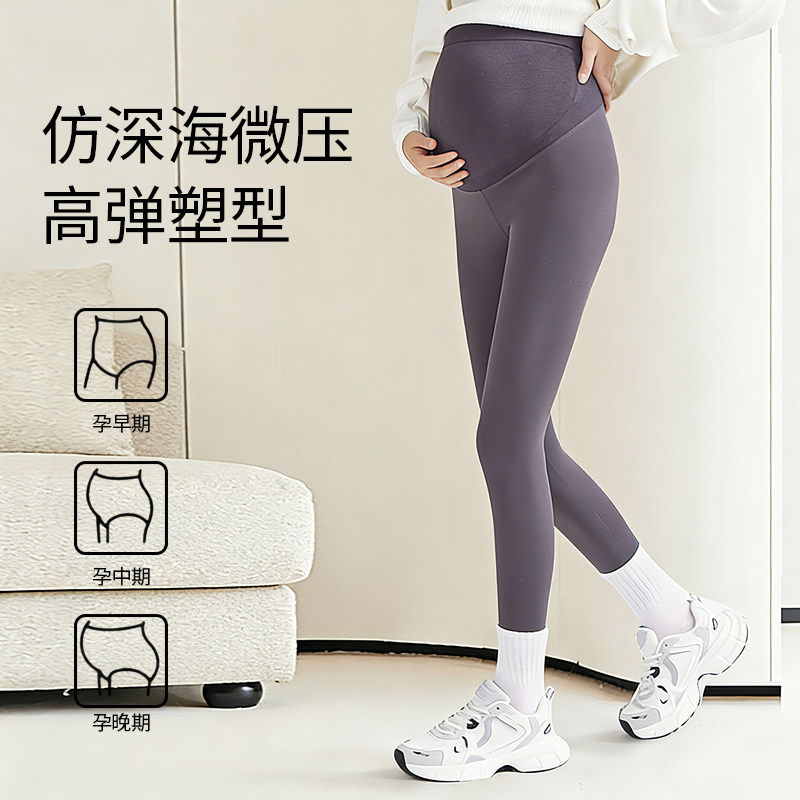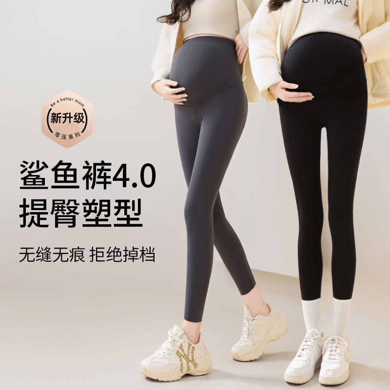 十月结晶孕妇打底裤子小个子裸感不勒肚子外穿不掉档鲨鱼裤春装季