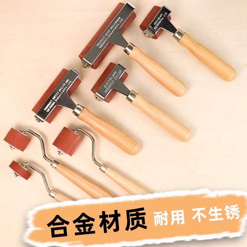 版画滚轮油墨滚轴美术滚筒脱瘾橡胶胶辊高级木柄版画工具上色滚刷