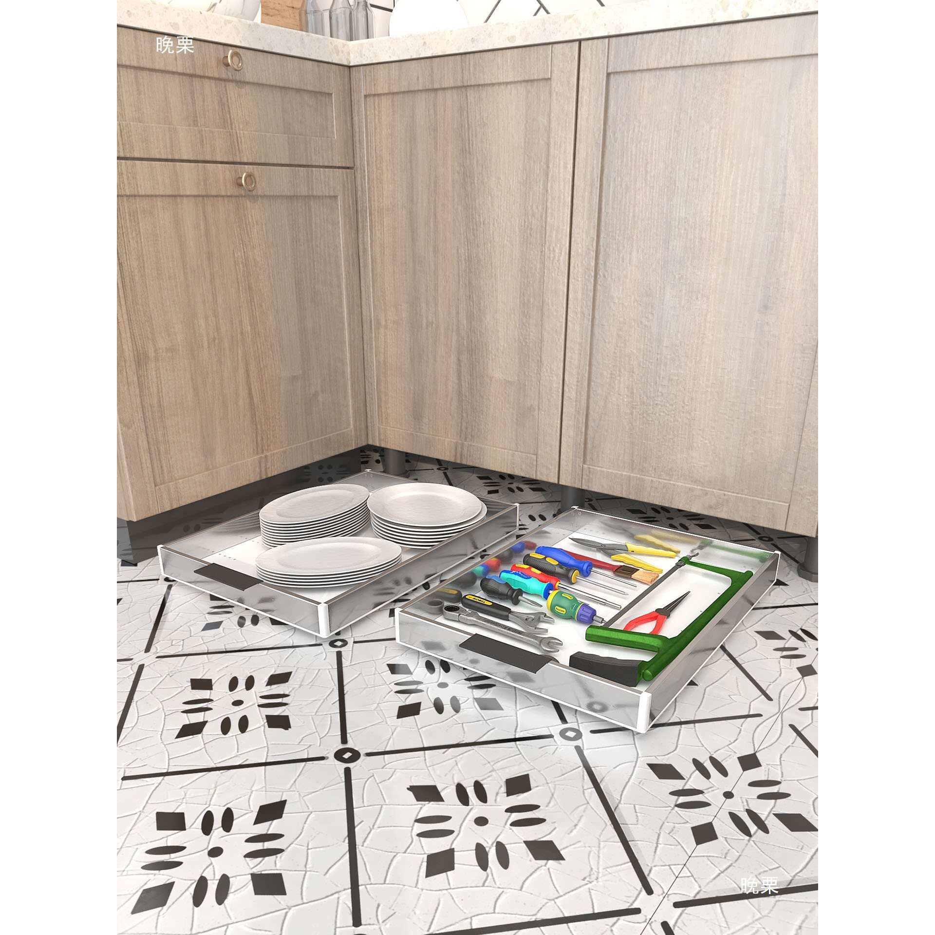 柜子底改造收纳托盘带万向轮收纳盒踢脚抽橱柜厨房新款耐摔转角柜