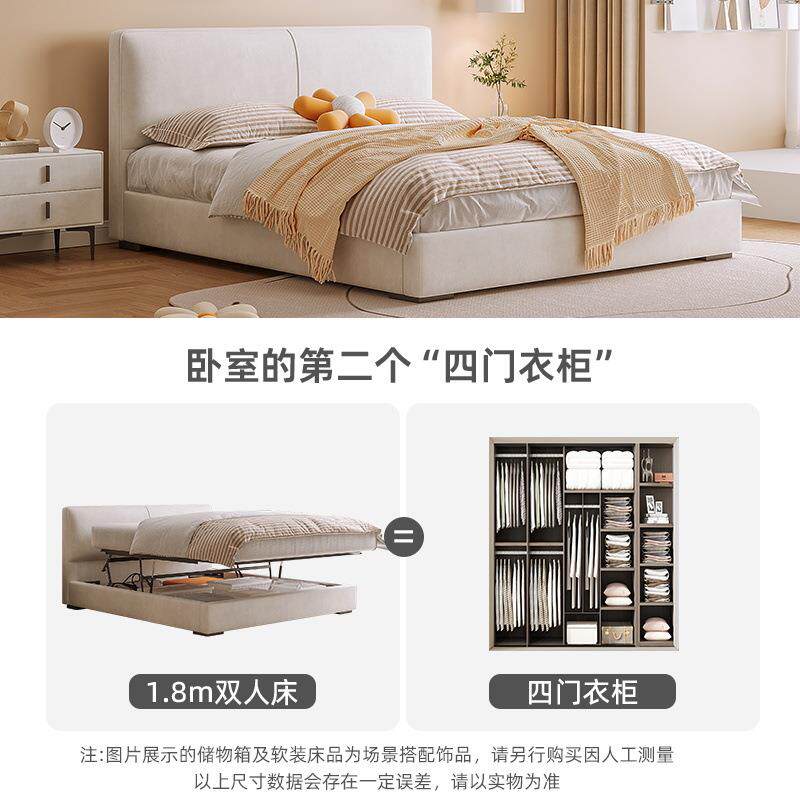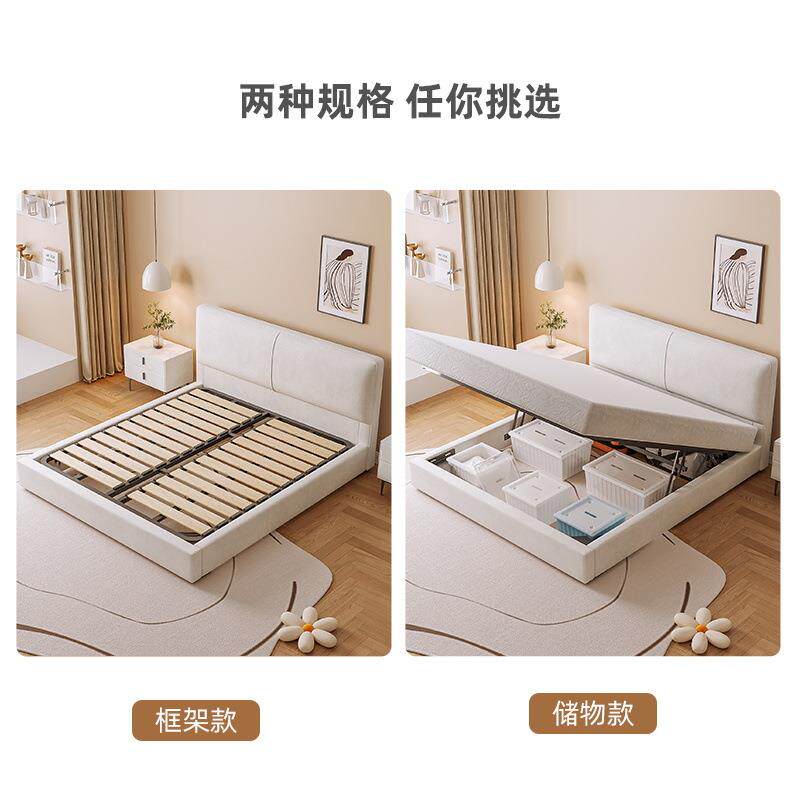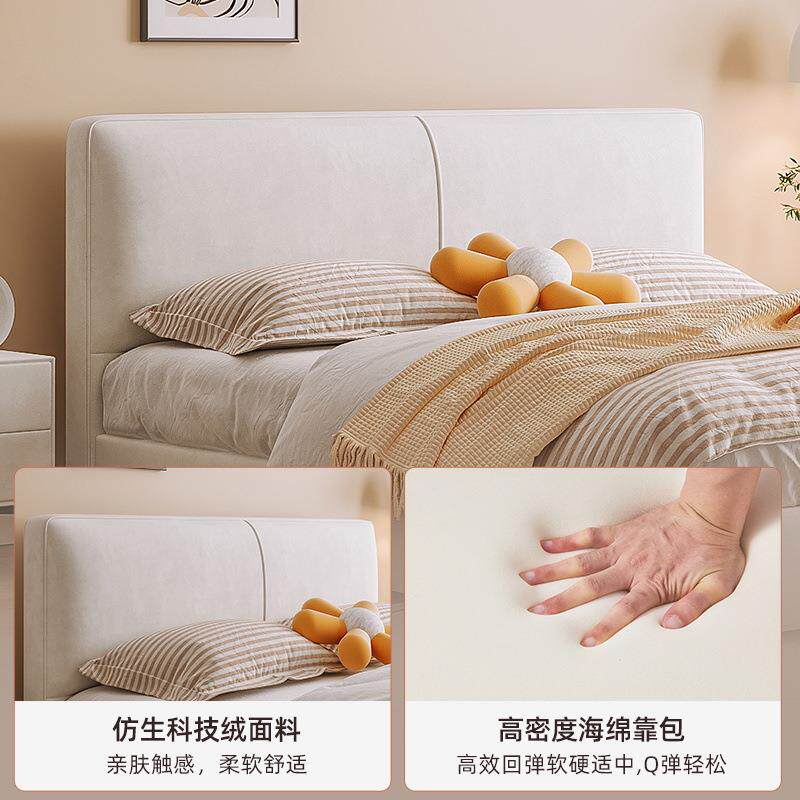 奶油风豆腐块床主卧轻奢现代布艺双人1.8米齐边新法式落地高箱床
