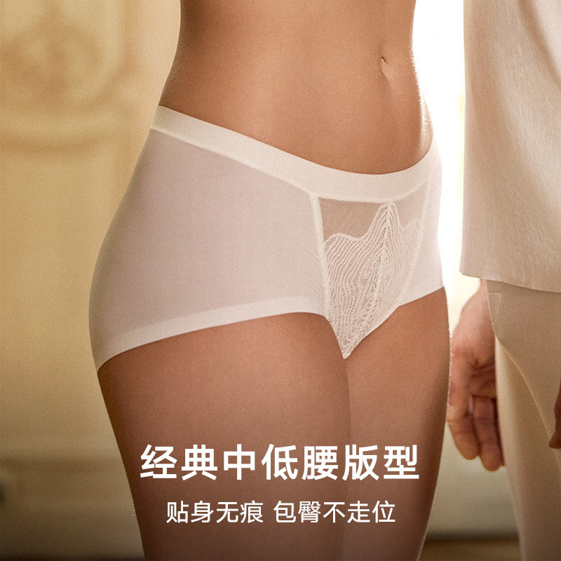 曼妮芬性感蕾丝中低腰低角裤女士内裤舒适全棉内裆底裤20640640