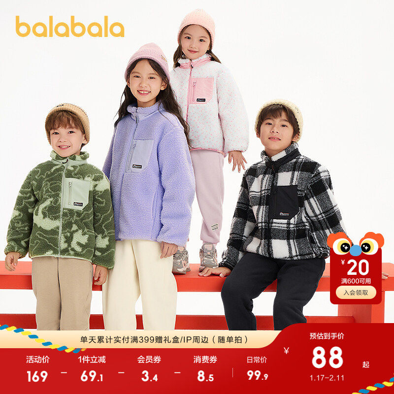 巴拉巴拉童装男童外套儿童秋冬装女童摇粒绒上衣拼接撞色亲子装