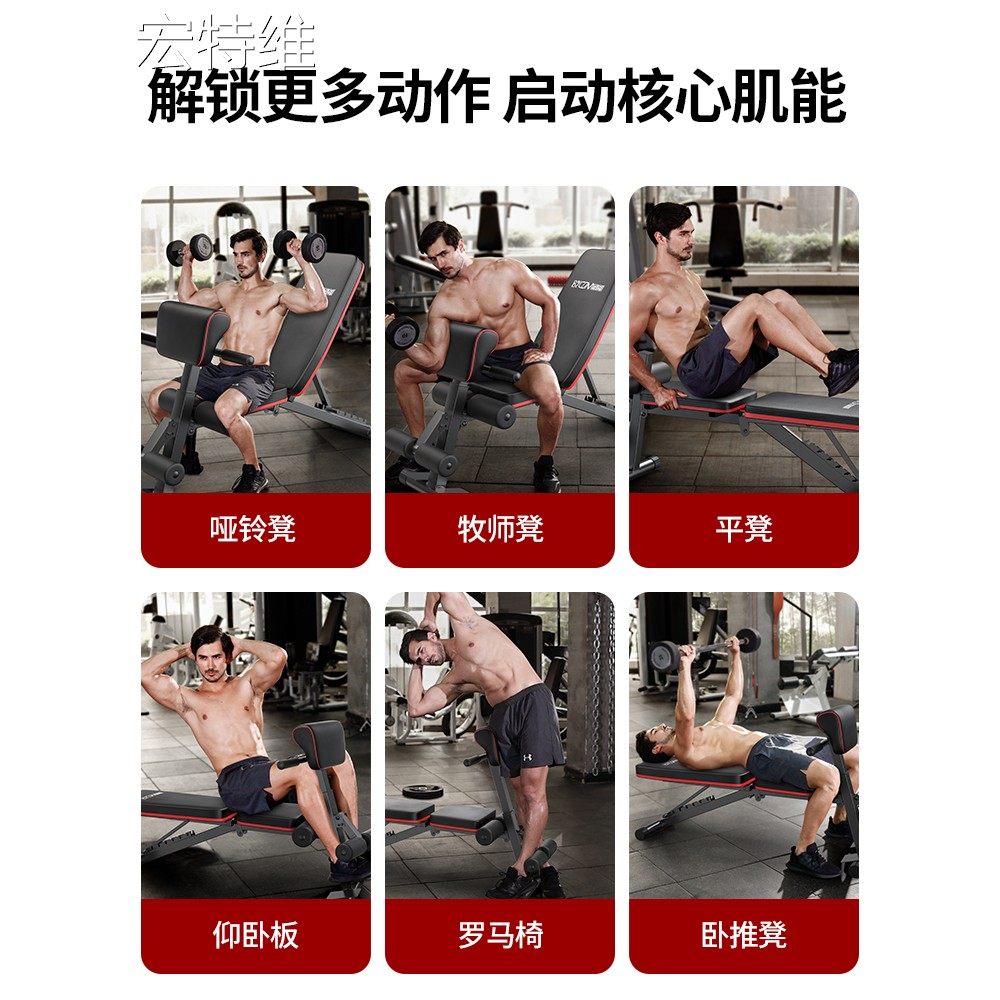 宏特维百创多功能六合一可折叠家用哑铃凳仰卧起坐板飞鸟卧推凳健身器材摆件饰品