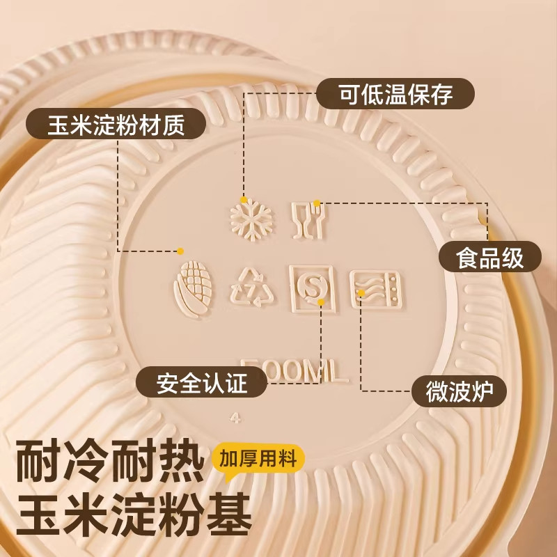 可降解一次性玉米淀粉环保餐盒食品级碗家用饭盒四分格外卖打包盒