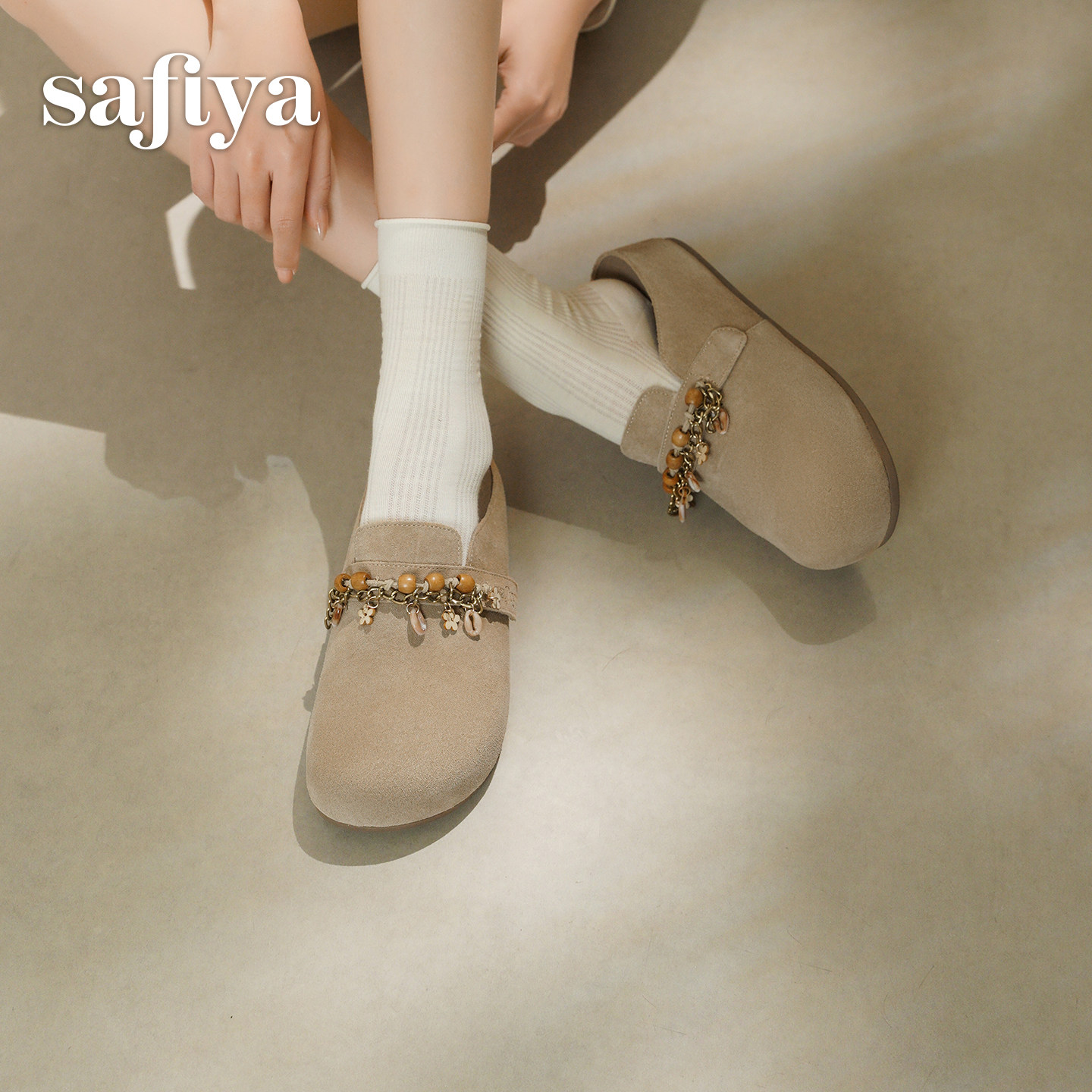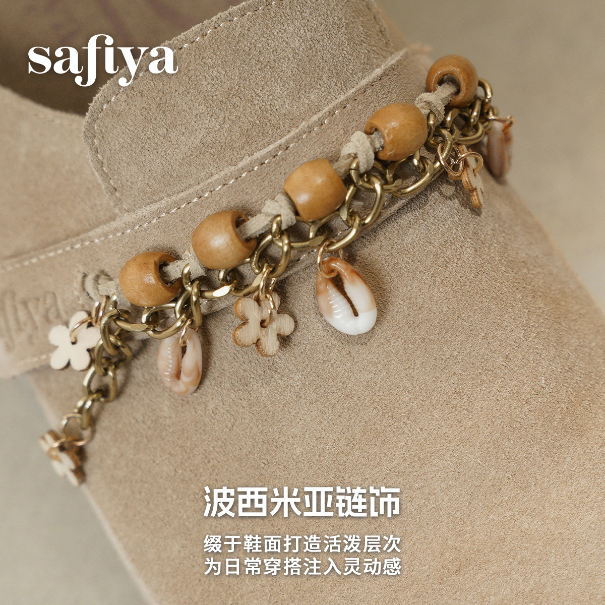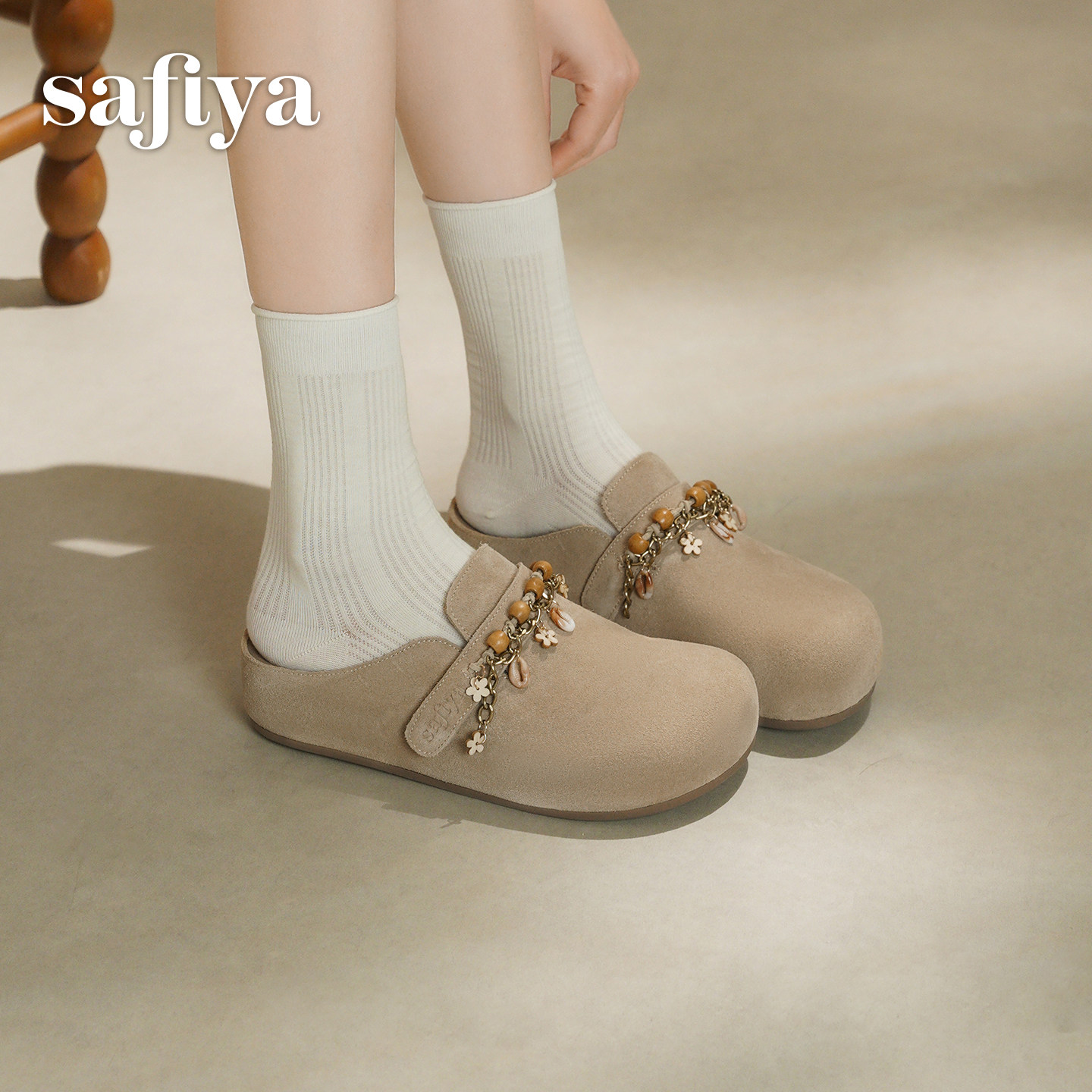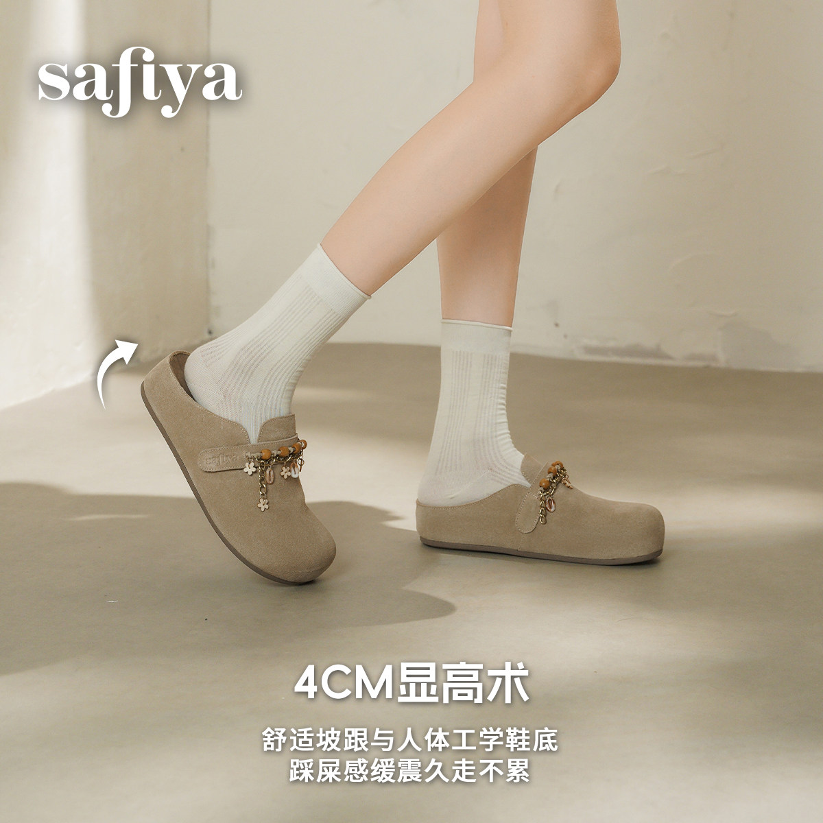 索菲娅2026春季新品木珠小花链条厚底包头半拖外穿百搭懒人勃肯鞋