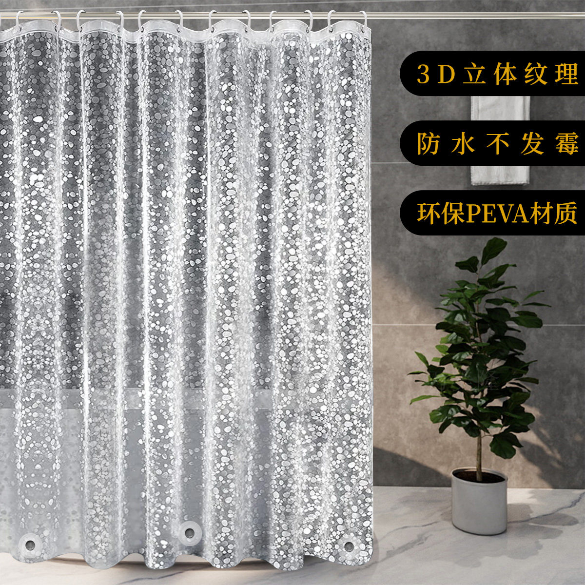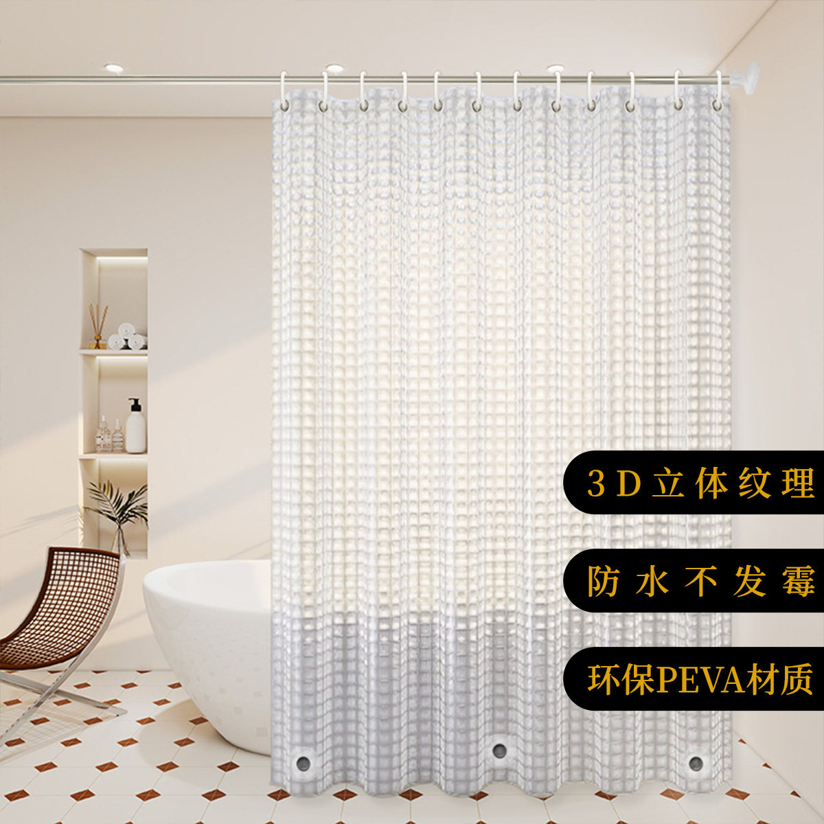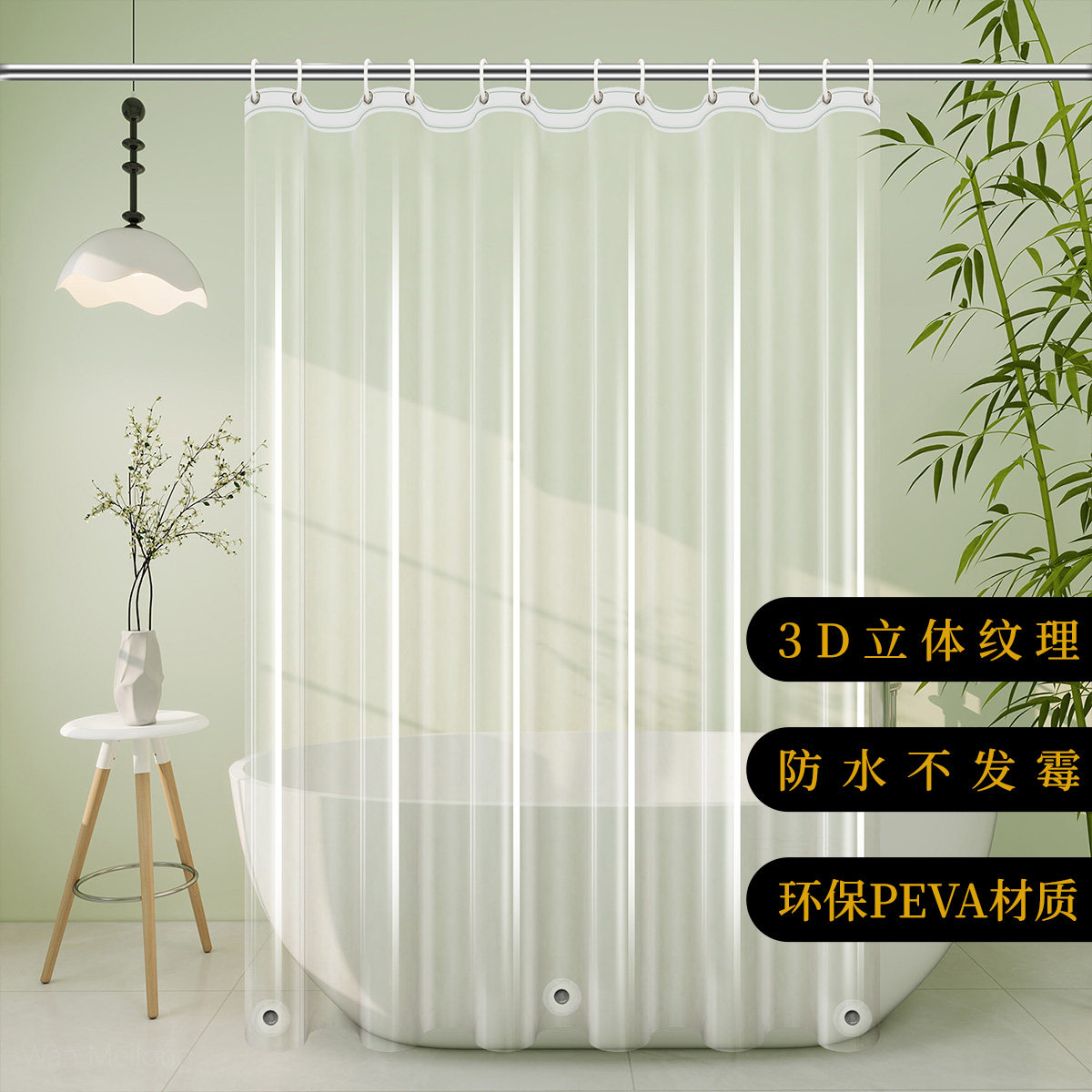 浴室防水浴帘卫生间防霉免打孔套装洗澡淋浴隔断帘子防水磁铁浴帘