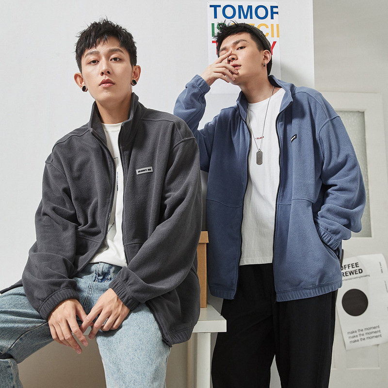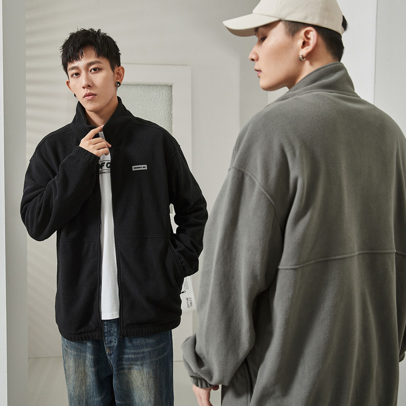 唐狮摇粒绒外套男春季韩版潮流立领宽松休闲夹克青少