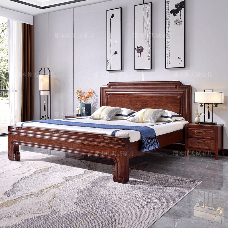 全实木床南美紫檀木榫卯工艺1.8米新中式双人床主卧2米婚床