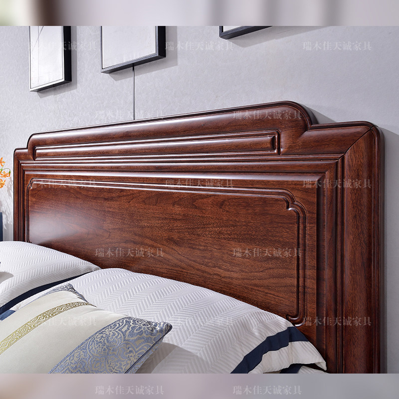 实木床现代简约胡桃木主卧1.5米双人床1.8米主卧轻奢婚房双人床