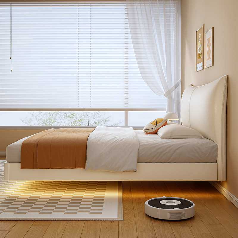 新款悬浮床现代简约双人床大气轻奢主卧大床意式极简卧室皮艺床