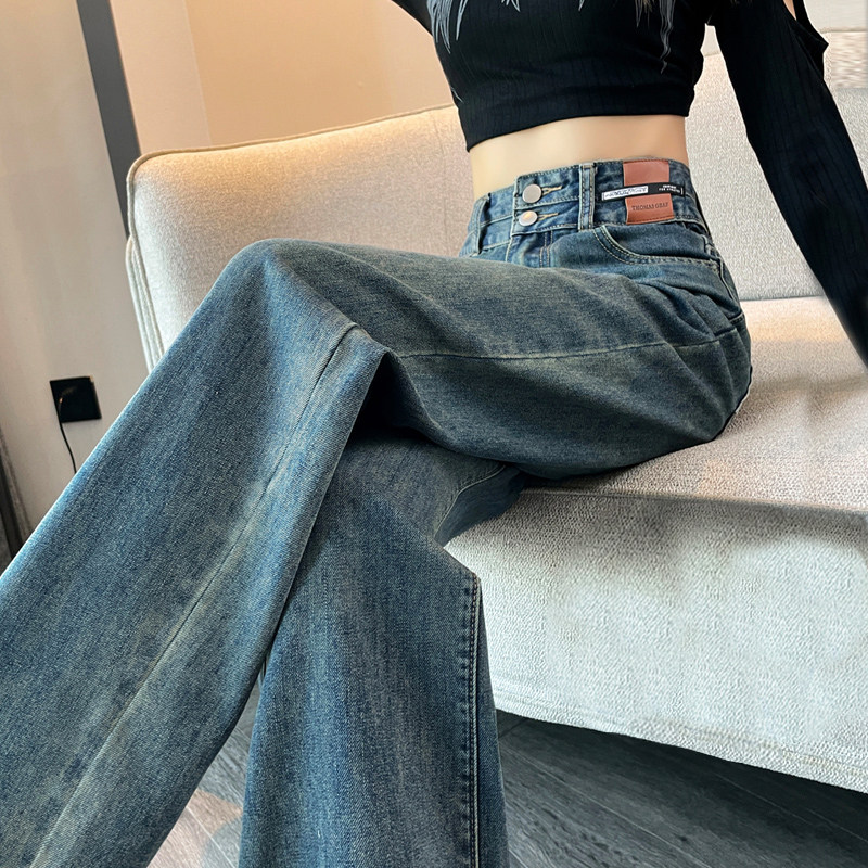 复古蓝牛仔裤女秋冬新款胖mm高腰宽松显瘦直筒阔腿裤梨型身材裤子