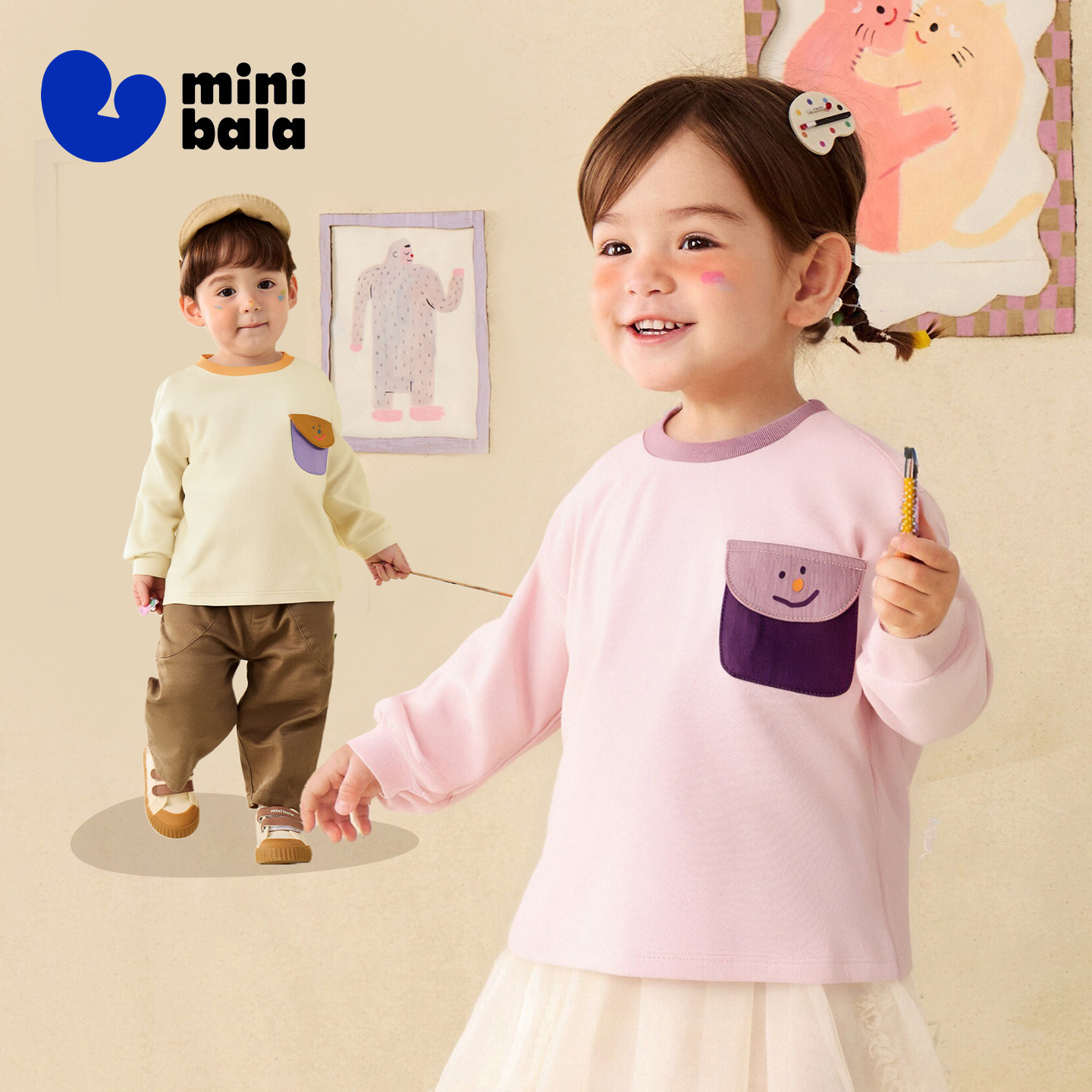 迷你巴拉巴拉男女宝宝长袖T恤纯棉儿童春新品亲肤内搭上衣